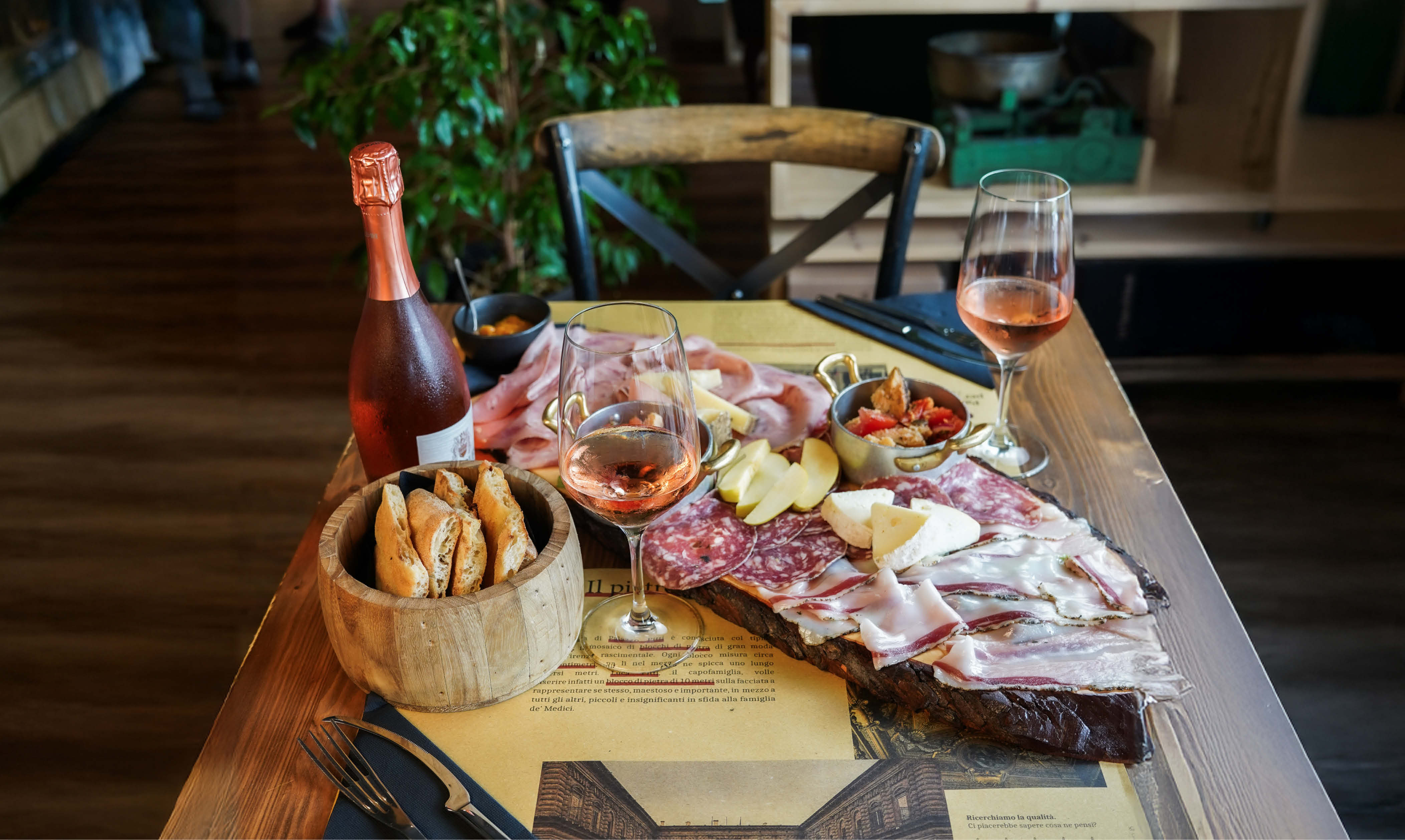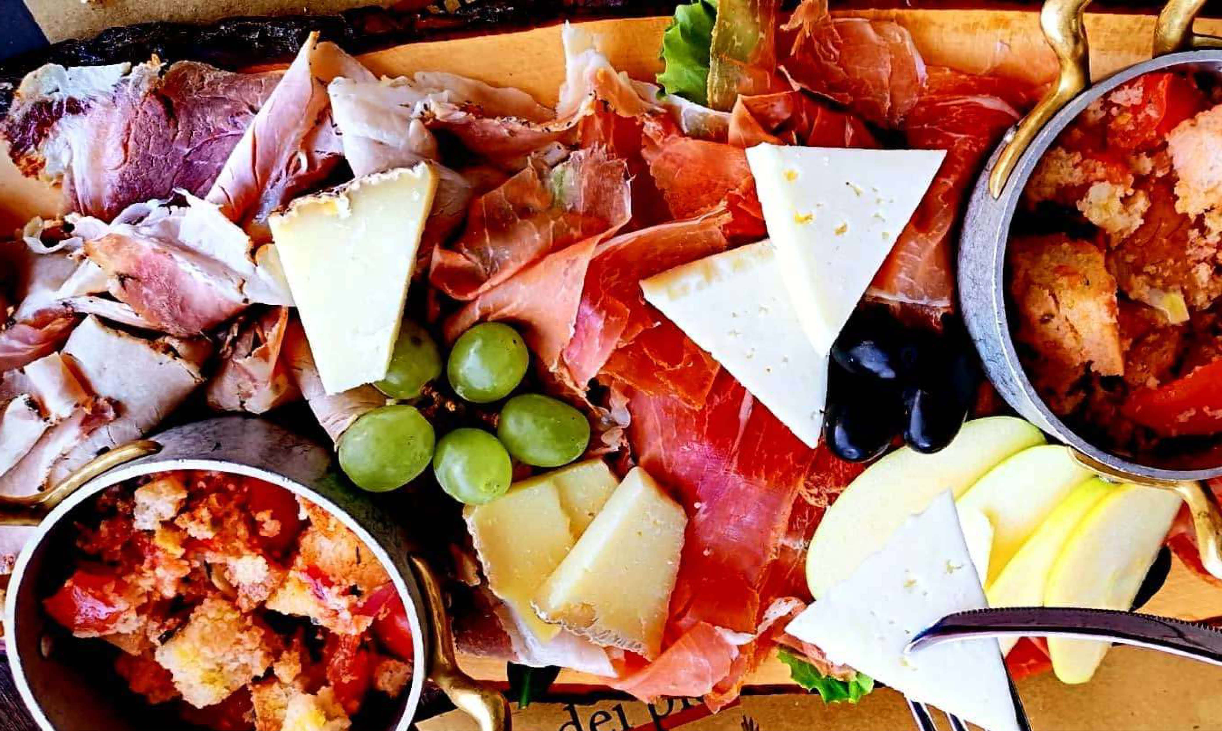 Colonnata lard, wild boar mortadella, truffle salami, pear and pienza pecorino cheese, homemade jam and panzanella (bread, onion, capers, basil, tomatoes, celery, cucumber) ( for 2 people €17)